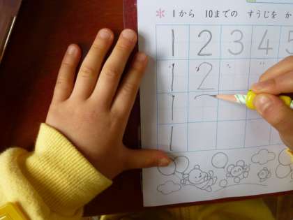 今日の「すうじのおけいこ」は,1〜3までの数字を書く練習でした。最初に担任の先生から書き方を教わり,次に指で書きました。(画像上)数字の書き方が確認できたら,プリントに書かれた数字を鉛筆でなぞってから,ますの中にていねいに数字を書きました。8人の1年生は,しっかりと担任の先生のお話を聞いて,上手に1〜3の数字を書いていました。(画像中と下)
