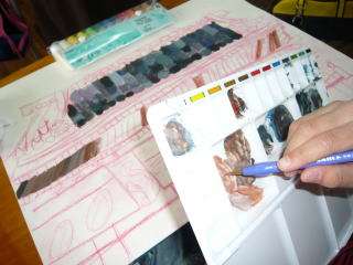 写生会の絵の仕上げ (4年生)