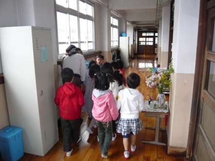 1年生が2年生に,「学校探検」に連れて行ってもらいました。以前に担任の先生と一緒に学校探検に行っていますが,今回は2年生のお兄さんやお姉さんに,いろいろな部屋(教室)の説明をしてもらいながら探検をしました。