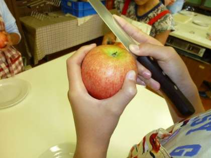 「リンゴの皮むき大会」 を行いました (5年生)
