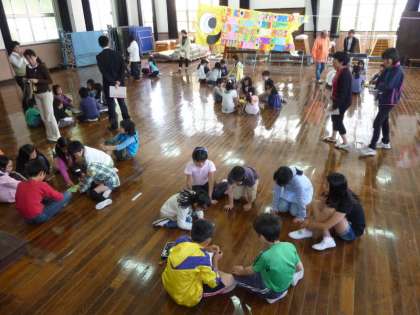 縦割りグループで活動する「なかよしグループ」の初顔合わせの「なかよしタイム」が,「1年生を迎える会」が終わった後にありました。この「なかよしグループ」は,児童会が主催する「児童集会」や「ルンルンタイム」,「全校体験活動」などの,縦割り活動で活躍します。