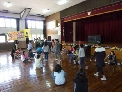 ジャンケンゲームで,最後まで勝ち残ったのはFグループで,大喜びの様子を表していました。ジャンケンゲームの余韻の残る中,終わりのあいさつがあり,その後1年生から順に教室に戻って,「なかよしタイム」が終了しました。