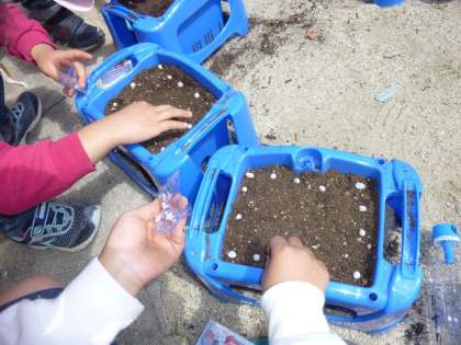 1年生の子どもたちが,生活科の学習で「アサガオの種まき」をしました。