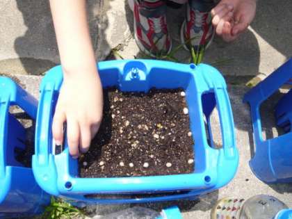 4時間目に1年生が,生活科の学習で「アサガオの種まき」をしました。
