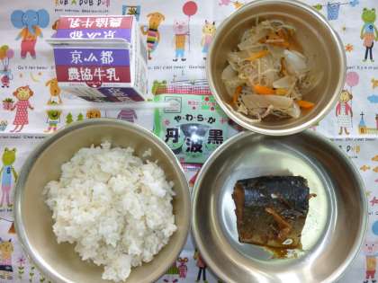 今日の給食の献立は,「麦ごはん」,「牛乳」,「さばのオイスターソース煮」,「中華風いためもの」,「黒大豆」でした。じっくりと煮含めた「さばのオイスターソース煮」の「さば」は,ごはんにぴったりの味で,また,「中華風いためもの」も「豚肉」や「たまねぎ」,「にんじん」,「もやし」が入っていて,とってもおいしくいただくことができました。今日は,至福の給食時間でした。