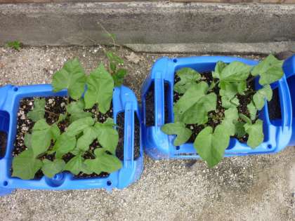 1年生の子どもたちは,まもなく青色の植木鉢にアサガオを一株だけを残してプランターに植え替えたり,支柱を立てたりするものと思われます。早く大きなアサガオの花が咲くのが見たいですね。