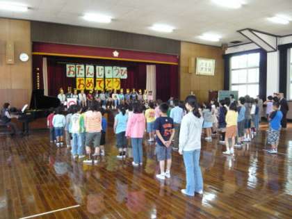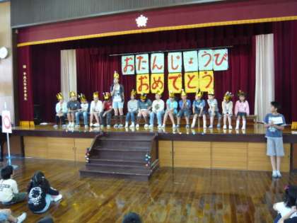 4・5月生まれの子どもたちが,誕生日と名前,今がんばっていることを話して自己紹介をしました。次に,フロアの全員が「ハッピーバースデー」を歌って,誕生を祝いました。