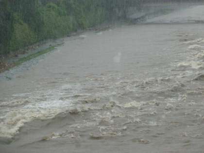 ら団栗橋を見た画像です。なお,午前9時現在,遊歩道は水没したようです。