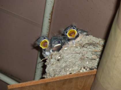 3羽のヒナとも大変元気で,3日前に比べて産毛のような毛も少なくなり,やや子ツバメらしくなってきました。大きな口を開けて餌をねだっている姿が,合唱しているようで微笑ましく感じます。この子ツバメたち,巣立ちの日まで静かに見守ってやろうと思います。