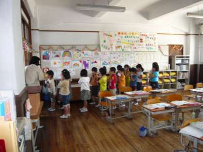 1年生の初めての「避難訓練」の様子です。