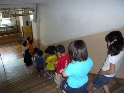 1年生の初めての「避難訓練」の様子です。