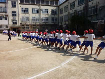 今日の2時間目の全校練習は,全校児童で行う団体競技の「綱引き」の練習を最初に行いました。今日の結果は,1回戦は赤組,2回戦は白組が勝ちました。1勝1敗なので3回戦目が本当はありますが,運動会当日のためにとっておいて,今日は3回戦目を行いませんでした。運動会当日は,力の入った綱引きが見られそうです。力強く綱引きを行ったあとの今日の全校練習は,応援の練習でしめくくりました。応援の練習は「エール交換」と「応援合戦」,このどちらもが応援団と各色の子どもたちが一体となって,素晴らしい応援になってきています。9月26日(日)の運動会がとっても楽しみになってきました。