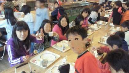 朝食風景。5校の友達とも仲良しになった様子が伝わってきました。今日の午前中に