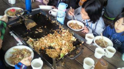 午前の活動の後は、まず昼食作り。メニューは焼きそば。