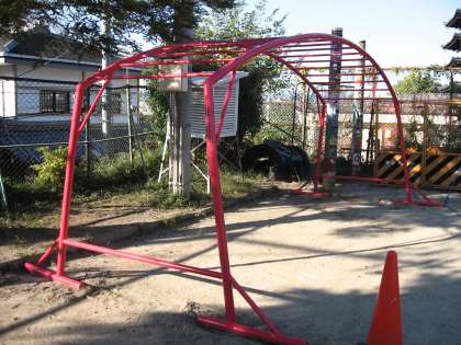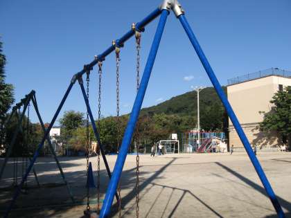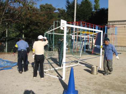 うんていやサッカーゴール、ブランコ、鉄棒に白壁を一生懸命美しくしてくださいました。青空にピカピカ輝く遊具に変身です。早くペンキが乾かないかな?楽しみな子どもたちです。ありがとうございました!