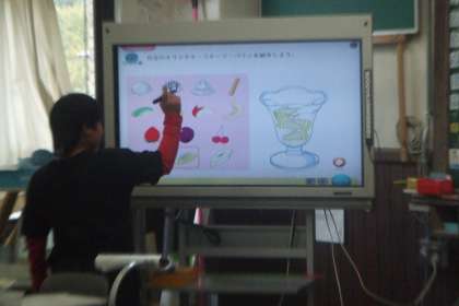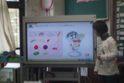 5年生は英語活動で,外来語を使う活動をしています。今日は,フルーツの名前を使って,自分だけのオリジナルパフェを楽しんでつくりました。テレビ画面上で,好きなフルーツやアイスクリームをトッピングしながらパフェをつくり,英語で紹介しました。おいしそうなパフェがたくさん紹介されましたよ。「もっとアイスのせたら?」「○○くん,キウイ好きじゃないの?」などと,聞いている子どもも,とても楽しそうにやりとりできました。発展的な表現をすすんで使うことができた子どももいました。Very good!!