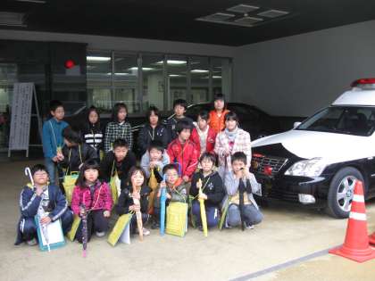 22日月曜日,社会科の学習「けいさつしょの仕事」で,東山警察署の見学に行ってきました。1人欠席があったのは残念でしたが,担当の方から警察署のお仕事についてのお話を聞いたり,署内を案内していただいたりして,とてもよい学習ができました。 はじめは少し緊張気味だった子どもたちでしたが,パトカーに乗せてもらったり自転車シミュレーションを体験させていただいたりしているうちに,表情もいきいきとしてきました。