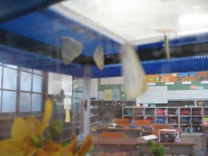 今さなぎだったチョウが続々と空へ羽ばたいています。月曜日は一度に9羽以上のチョウが飼育ケースの中にいてビックリ!元気に自然の中を飛び回ってね!