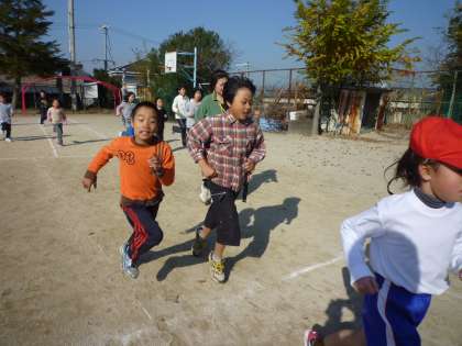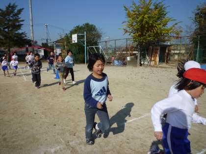 走った分だけ色を塗っているので、子供達は張り切って走っています。