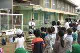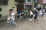6月3日。洛東中学校の生徒会が計画する地域の清掃活動「クリーンアップ洛東」に,6年生児童が参加しました。洛東中学校に集合して,中学校のバスケットボールクラブの先輩達と一緒に,道路に落ちているゴミを拾いながら学校まで帰ってきました。