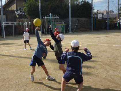 3年生は体育でエンドボールをしています。
