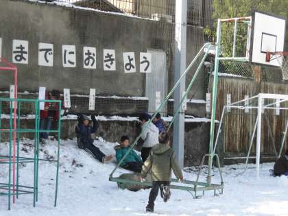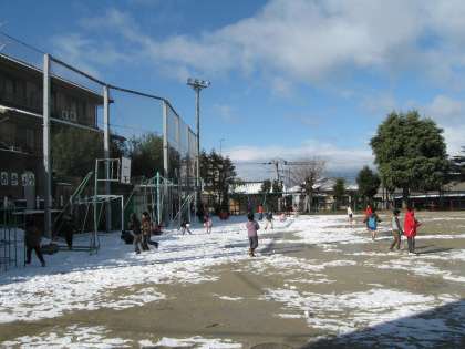昨日からの雪が中庭や運動場に残り,今日は少し雪遊びをすることができました♪年末のようなたくさんの積雪ではなかったのですが,それでも子どもたちは目を輝かせて雪合戦などに興じていました。