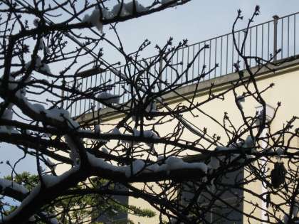 中庭で,ふと見上げると,雪の積もった桜の枝の先に「新しい芽」ができていました。自然界では順々に次の季節の準備がされているのですね。清水校の閉校まであと2ヶ月と少し。わたしたちもしっかり,充実した活動を行っていきたいです。