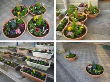 まだまだ寒い毎日が続いていますが,もうすぐ,春がやってきます。この春には,卒業式や修了式,そして,清水校の閉校式があります。その時に,校内をきれいに飾るお花の準備をしました。一人一株ずつパンジーを植えたり,各学級で2〜3個のプランターに寄せ植えをしました。まだまだ,小さな株ですが,春には,大きく育ってたくさんのお花を咲かせてくれることだと思います。その花々で,校内をきれいに飾りたいと思います。