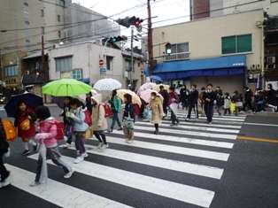 17日(木)。今日は,4月から通う開睛小中学校の登校シミュレーションが行われました。朝,各町内の集合場所に集まって,開睛館まで集団登校をしました。中学生のお兄さん,お姉さんも一緒でした。清水道や五条坂の交差点等,危険な場所には,PTAの方や地域の方が立って,みんなを見守ってくださいました。本当にありがとうございました。
