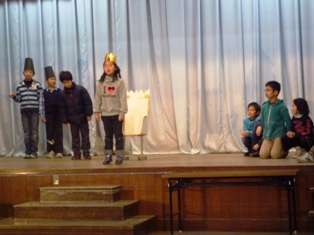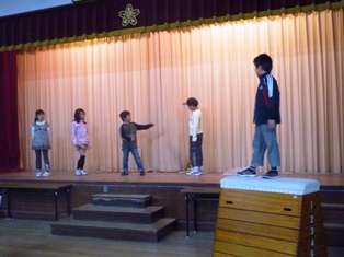 3年生は,誰もがよ〜く知っている「地獄のそうべえ」のお話の劇を発表します。そうべえ達と鬼達のユニークな掛け合いを工夫しながら練習しています。4年生は,清水の自然をテーマにした「清水は生きている」の劇を発表します。みんなで作った小道具も使って,練習しています。