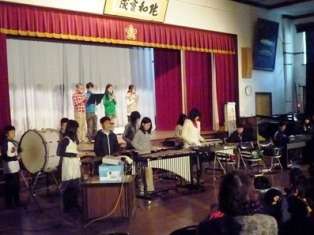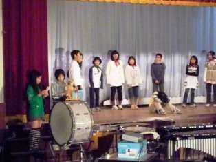 6年生は,「きずな〜清水小学校を愛するみなさんへ〜」の劇を演じました。昔から清水小学校に宿る精と,清水小学校に残されている「青い目の人形」が,一人の子どもに勇気を与え,仲間にも勇気付けられて,最後のお別れ会の日を迎えました。6年生らしく,とても難しい合奏や合唱に挑戦し,しっかり発表することができました。