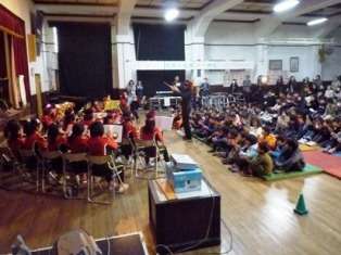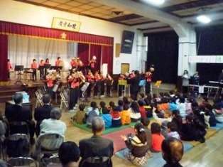 午後の部のトップは,金管バンドクラブの発表でした。「さくらんぼ」「メモリー」「聖者の行進」の3曲を演奏してくれました。地域の方々にも愛されてきた本校の金管バンドの演奏も,今回が本当にラストステージとなりました。会場から沸きあがる大きな手拍子に乗って,子ども達の元気いっぱいの演奏が響き,演奏後には大きな拍手がなりわたりました。