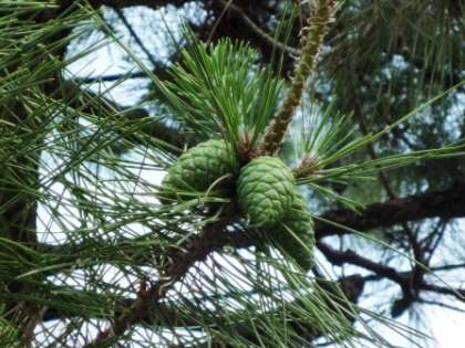 校内にある松の木に,今,松ぼっくりができてきました。まだ,鮮やかな緑色をしています。秋になれば茶色に変わり,1・2年生の秋見つけの学習で,松ぼっくりを使った飾りなどに使われることと思います。(6月25日)