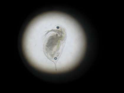 上の写真は観察したミジンコです。理科の学習で、池や川にすむ魚が食べているものを観察しました。