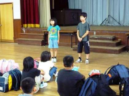 7月9日(木)。今日から,2泊3日のみさきの家に出発しました。朝が早かったですが,M君の司会で出発式が進められました。はじめにHさんの元気な挨拶がありました。おうち方もたくさん来ていただきました。