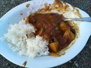 5時。野外炊事で作ったカレー。苦戦しながらも、どの班もおいしくできました!おいしくいただきました。心配していた天気も,今日は,雨にあわずに予定通り進めることができそうです。今晩の予定は,キャンプファイアーです。開睛小学校で一緒になる5つの小学校で,楽しく行う予定です。
