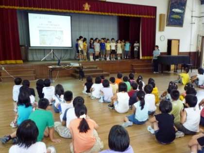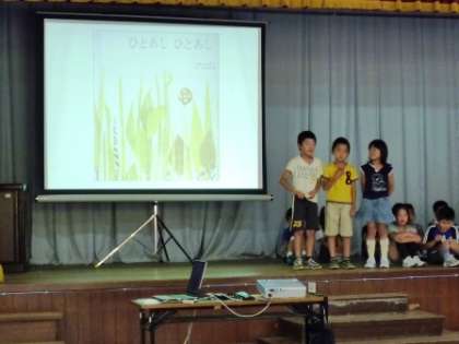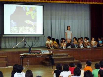 7月15日。清水タイムの時間に,国語の時間に「レオ=レオニ」の本を読んで勉強したことを,一人一人ガ紹介しました。その本の主人公のことや好きな場面,おすすめしたいことなどを考えて発表しました。