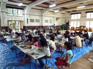 8月5日。家庭教育学級の取組で,「親子陶芸教室」が開催されました。毎年お世話になっている陶芸家のK先生をお招きして,教えていただきました。今年は,例年より多く60名を越える参加者がありました。