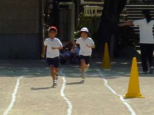 1年生にとって初めての運動会です。直線コースやカーブを上手に走ることができるかな。今日は,2人ずつで走る練習をしました。2年生のお兄さんお姉さんの声援ももらって,みんな上手に,ゴールまで走ることができました。