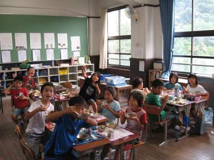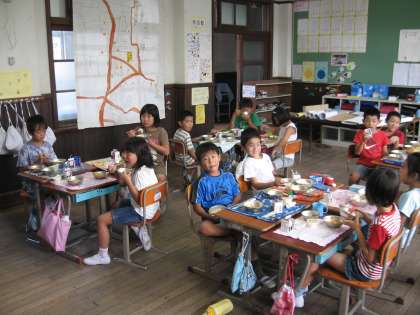 夏休みが終わり、元気な顔が教室にそろいました。給食時間、もりもり食べています!ますます大きくなあれ!又、運動会の練習が始まっています。今年は4年生と合同で、四つ竹を手に、沖縄の民舞「ちゃーびらさい」を踊ります。どうぞお楽しみに