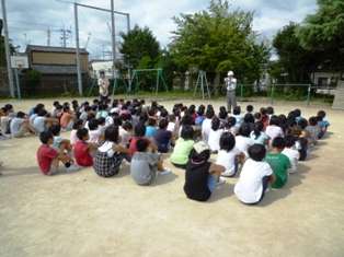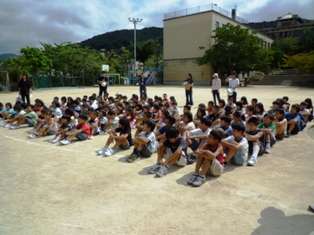 3分以内で,全員が運動場へ避難し終わることができました。前回5月に,火災を想定した避難訓練の時よりも,早く避難することができました。運動場に集まったあと,校長先生から,昔あった関東大震災や阪神淡路大震災の時の話しや,今日の訓練の様子についてお話を聞きました。本当に,大きな地震が起ったときにも,今日のように,みんなが,早く安全に避難できるようにしたいと思います。