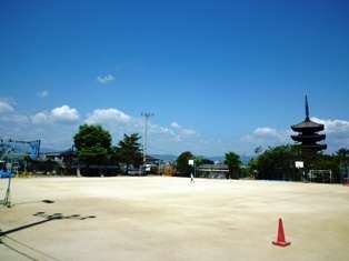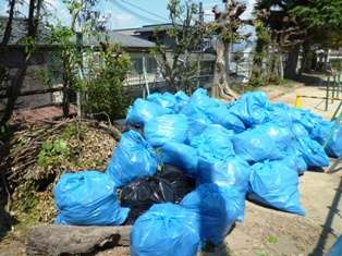 およそ2時間ほどの時間で,校庭は,すっかりきれいになりました。グランドから見える景色も一変し,とても見晴らしがよくなりました。刈り取られた草を入れたゴミ袋が,山のように集まりました。