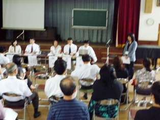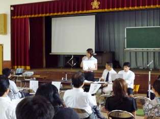 授業の後,取組報告会と,研究協議会を行いました。本校の取組報告に続いて,グループ協議を行い,本日の授業の良かった点や改善点,各校の取組の交流を行いました。また,中学校の先生も参加していただいていたので,中学校の先生の目から見たご意見も伺うことができました。