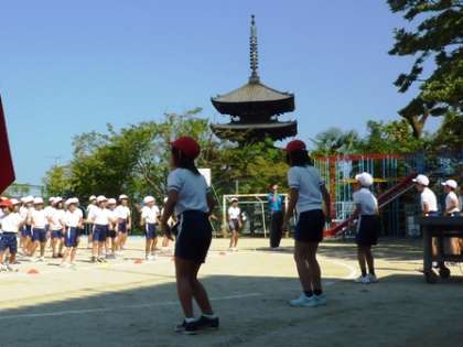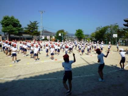 全校ダンスの練習は,これまでにも何回かしていたので,ずいぶん上手になってきました。今までは,講堂の中で練習してきましたが,今日は,広い運動場に出て練習したので,とても気持ちが良かったと思います。本番には,さらに,元気よく踊れるといいなと思います。