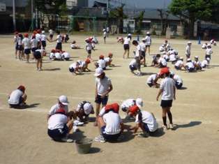 練習が終わった後,中間休みの時間を使って,運動場の石拾いをしました。本番,みんなが怪我をしないように,特に,トラックの中の石を拾って,きれいにしました。