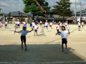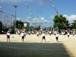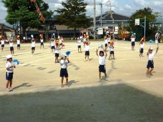 低学年の団体演技は,「おどろう!2009」でした。「おどろう」と「「おでかけサンバ」の軽快なリズムにのって,元気いっぱい踊りました。