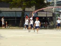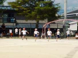 1年生の40m走です。小学校に入ってはじめての運動会。少し緊張したけれど,おうちの方々の声援を受けて,力一杯走りました。