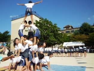 4段ピラミッドから,組み合わせ技の大きな大輪の花,そして,最後は,「心を1つに,天まで届け!」の高い塔。見ている方は,ハラハラドキドキ。でも,子ども達は,練習してきたものをしっかりと出し切ることができました。会場からは,大きな大きな拍手が届けられました。