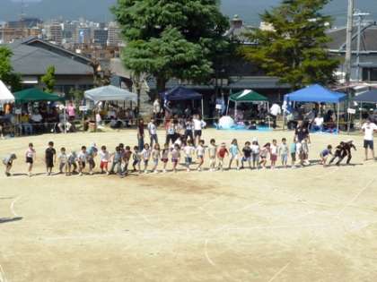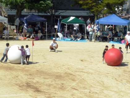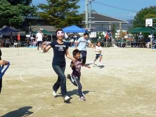 地域の方々に混じって,子どもたちも,いくつかの競技に参加させてもらいました。学校の運動会とは少しちがって,子どもたちもリラックスした雰囲気で参加していました。親子競争では,子ども達が,目隠しをしたお父さん,お母さんの手を引いてゴールをめざして走りました。