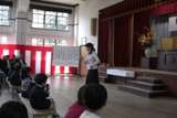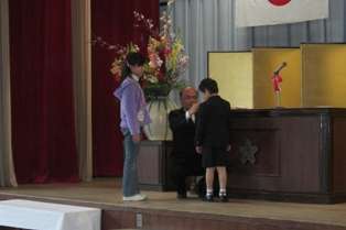 4月6日。17名の1年生が入学式を迎えました。おうちの方の手に引かれて初めて校門をくぐった1年生。嬉しさの中に,緊張や不安もあったようです。校長先生から担任の先生を紹介してもらい,先生から一人ずつ名前を呼んでもらいました。また,PTAから,校章のバッチを入学記念品としていただきました。